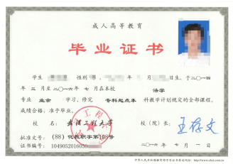 学生学完教学计划规定的全部课程,经考核合格,由武汉工程大学颁发国家承认的成人高等教育专科或本科证书。所有毕业证书实行教育部统一电子注册,并可在教育部中国高等教育学生信息网查询,符合学位授予条件的本科毕业生可授予学士学位。