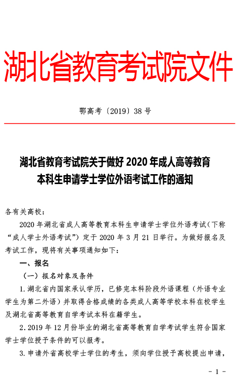 关于做好2020年成人高等教育本科生申请学士学位外语考试工作的通知
