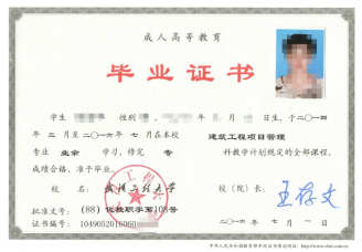 学生学完教学计划规定的全部课程,经考核合格,由武汉工程大学颁发国家承认的成人高等教育专科或本科证书。所有毕业证书实行教育部统一电子注册,并可在教育部中国高等教育学生信息网查询,符合学位授予条件的本科毕业生可授予学士学位。